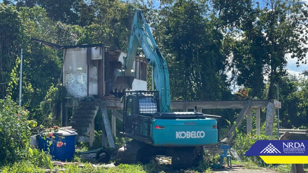 The final hurdle to the construction of the highly anticipated New Bandar Lawas Bridge was overcome today with the demolition of the remaining structure that had been impeding progress. On hand to witness this momentous occasion were the homeowner himself, Encik Ramli, along with the Northern Region Development Agency (NRDA) Regional Director Datu Haji Ubaidillah Abdul Latip, representatives from the project consultant HAPM Consultants Sdn Bhd Independent Checking Engineer (ICE) and the project contractor PPK Sdn Bhd.