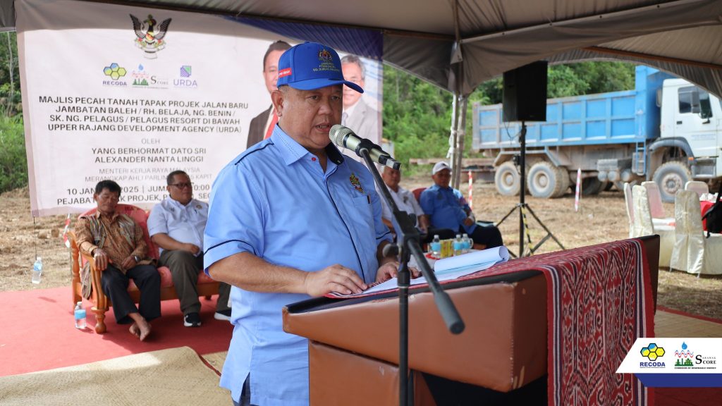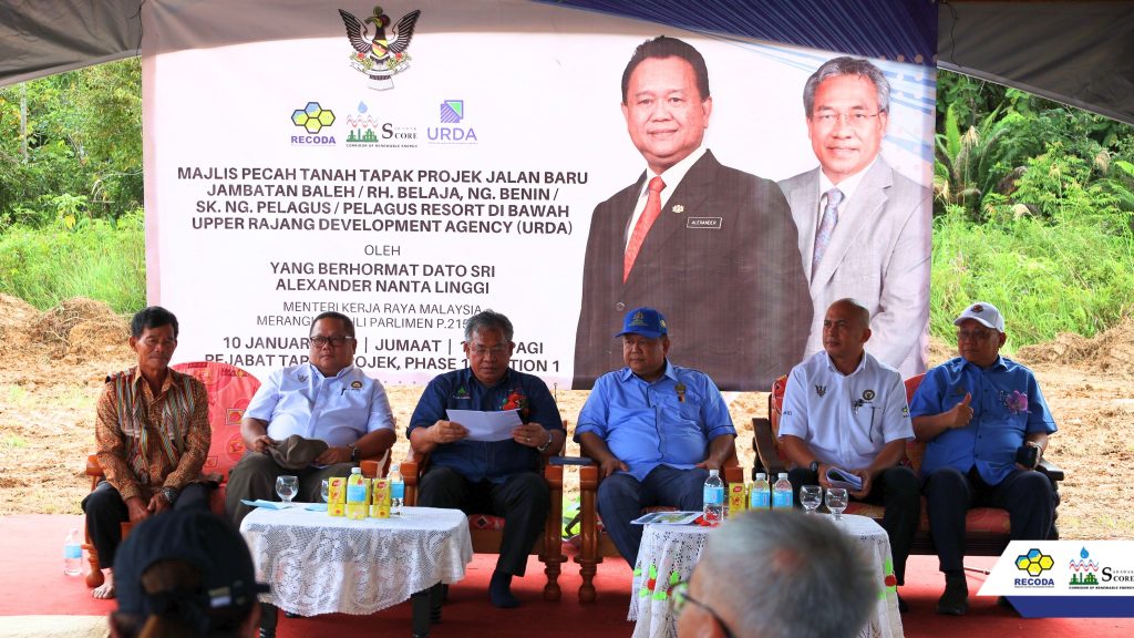 The groundbreaking ceremony for the Upper Rajang Development Agency (URDA) Development Project under the Regional Corridor Development Authority (RECODA) for Package 2: Road Infrastructure Project in Pelagus/Baleh was officiated by Yang Berhormat Dato Seri Alexander Nanta Linggi, Minister of Works Malaysia and Chairman of URDA.